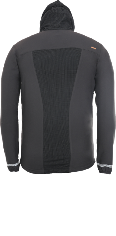 DOUBLE MESHLAYER FOR MASK-LIKE HOOD STYLE AND SLIGHTLY ASYMETRIC ZIP