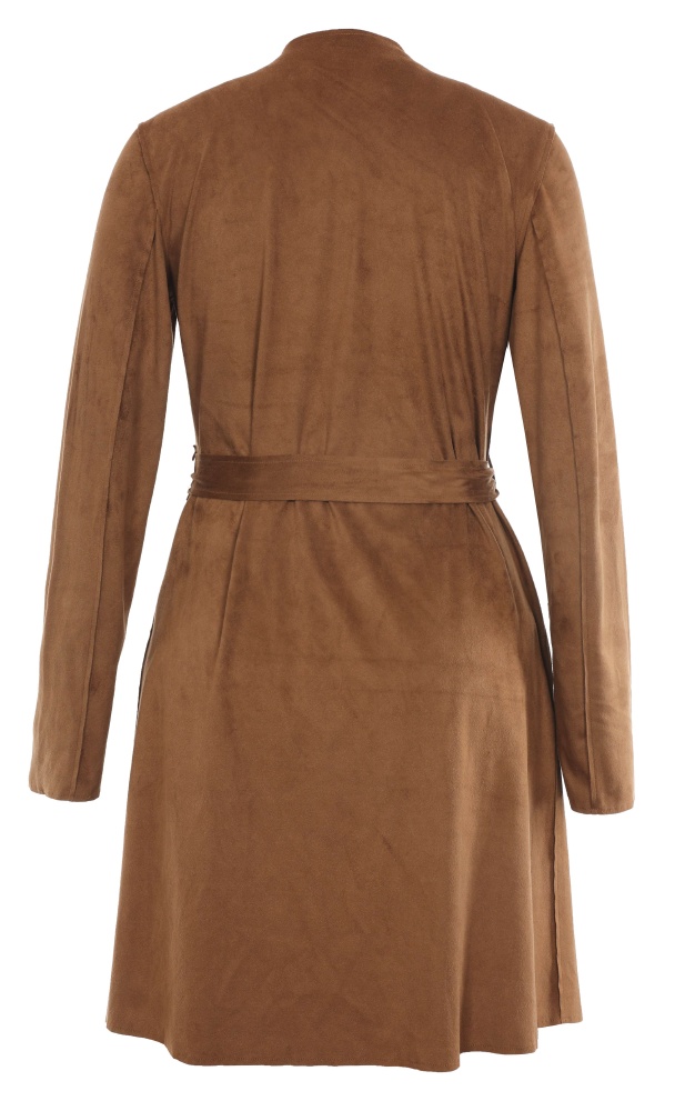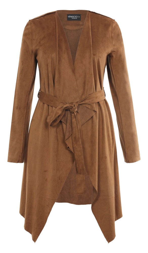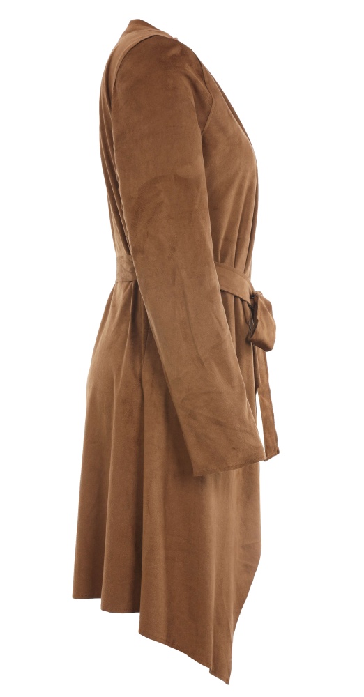 Long coat with overlapping front and tied at front closure