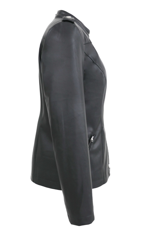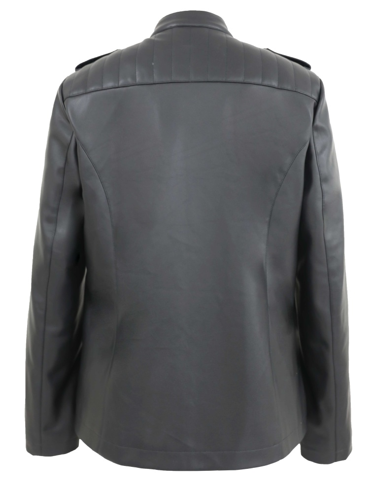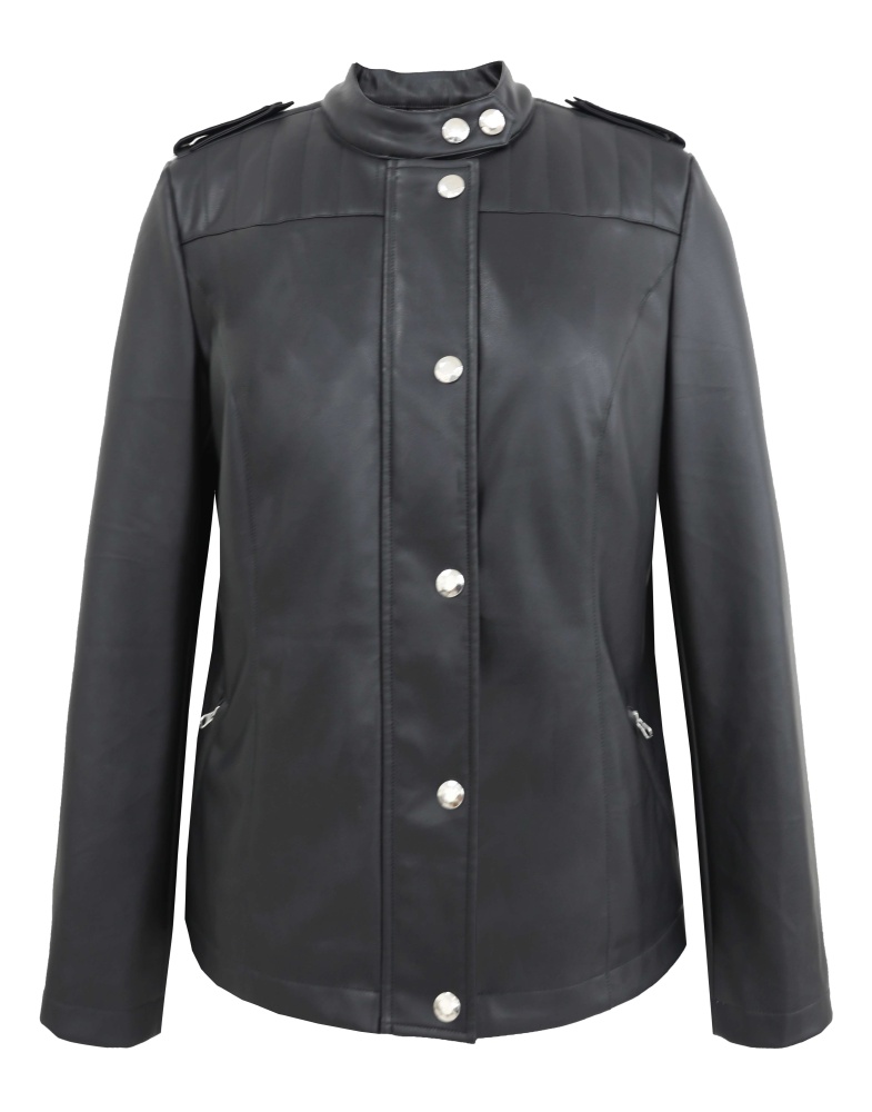 Fake leather jacket with round neck