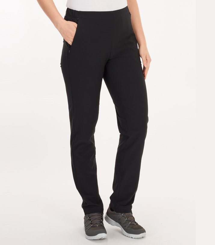 Ladies' tapered leg trousers with scooped pockets and elastic back waistband
